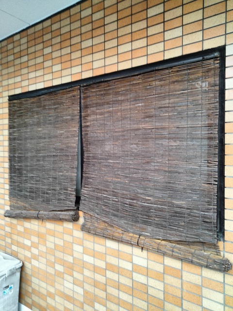 かげめたるデス!本日の作業は簾(すだれ)の交換でした。以前当店で取り付けたものですが経年の劣化でだいぶ傷んでおりました。綺麗にリニューアルし、お客様にハナマル頂きました!